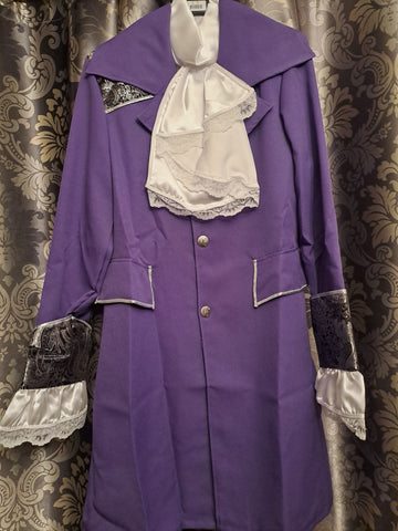 *Long purple Jacket, with frilled cuffs, and silver trim